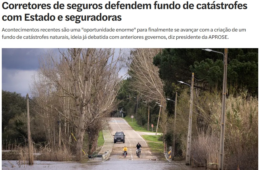 A 6 de fevereiro, a Associação Portuguesa de Seguradores (APS) anunciou que os líderes das empresas seguradoras que operam em Portugal entregaram uma declaração conjunta apelando ao poder político para que a criação de um mecanismo para responder a catástrofes naturais “seja assumida como uma prioridade estratégica de interesse público”.
