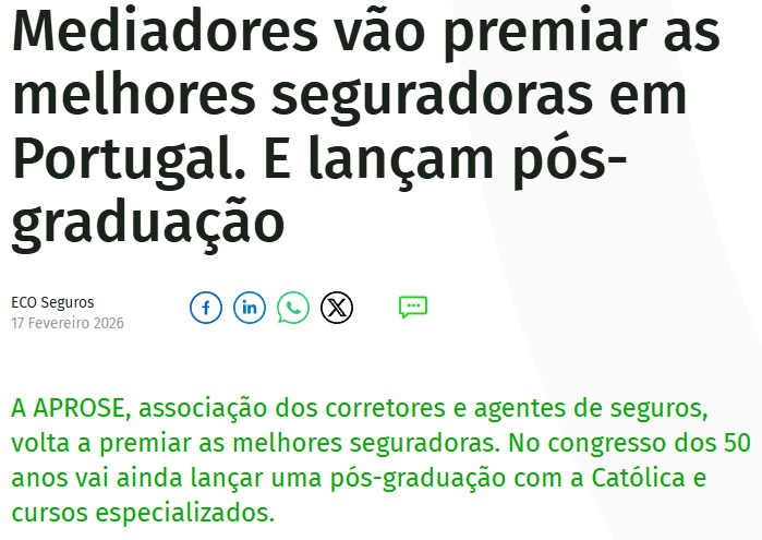 A APROSE, associação dos corretores e agentes de seguros, volta a premiar as melhores seguradoras. No congresso dos 50 anos vai ainda lançar uma pós-graduação com a Católica e cursos especializados