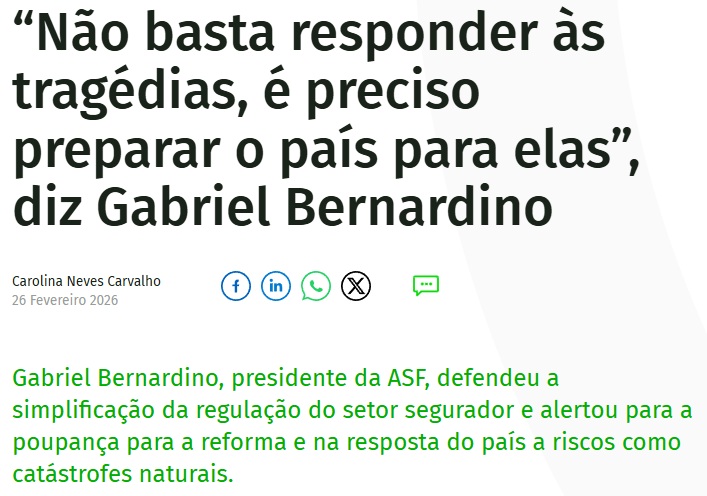 O Presidente da ASF deixou ainda a garantia de que o regulador estará atento, em 2026, aos seguros acessórios e aos seguros de proteção ao crédito, visto que representam um risco de conduta elevado, “sendo uma fonte considerável de prejuízo para os consumidores e de risco reputacional para a indústria seguradora”.
