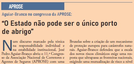 As recentes intempéries que assolaram o país serviram de mote para um dos pontos mais fortes da sua intervenção. O Presidente da AR instou Portugal a liderar o debate em Bruxelas sobre a criação de um mecanismo de proteção europeu para catástrofes naturais. Aguiar-Branco defendeu que a escala dos novos riscos climáticos exige uma resposta que ultrapassa as fronteiras nacionais, exigindo uma mutualização de risco a nível europeu que garanta a sustentabilidade do setor e a proteção das populações.