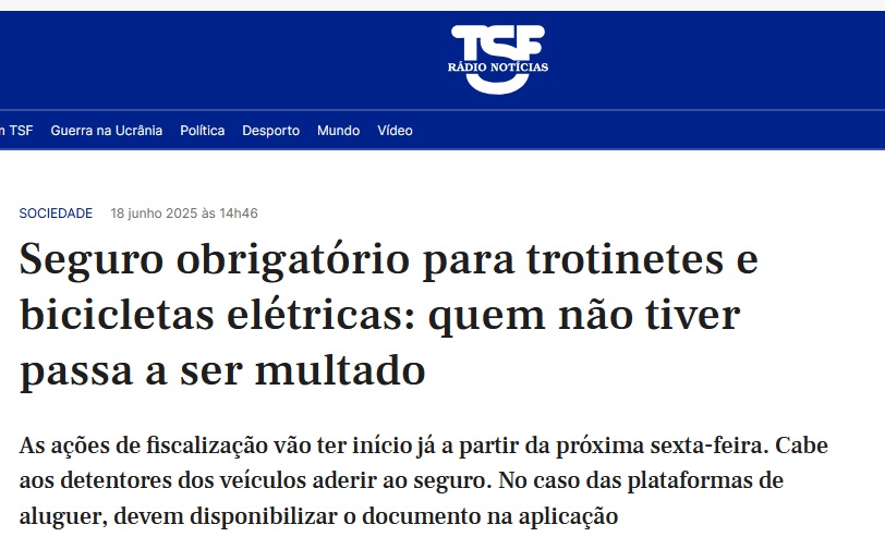 "O que acontece é que, se olharmos para o Código da Estrada português, tanto as trotinetes como as bicicletas elétricas só podem ter assistência até aos 25 km/h. Ou seja, nesse âmbito, não estão abrangidos. Se forem legais para circular em Portugal, não estão abrangidas porque a assistência elétrica só pode ir até aos 25 km/h", diz.